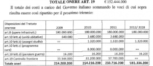 La Relazione Tecnica allegata al Trattato è molto chiara, ha un paragrafo dettagliato solo per i costi dell’ Art.19 (che ci siamo appena impegnati a pagare grazie a Gentiloni).